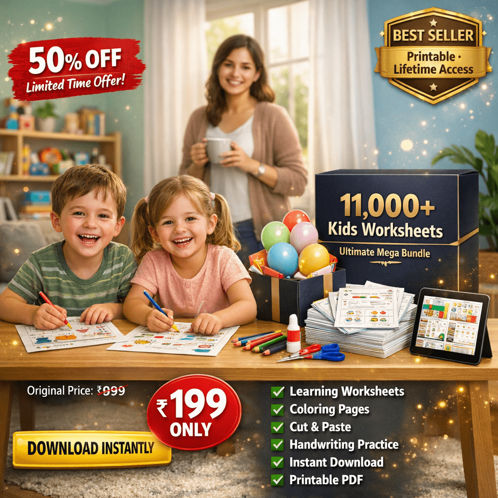 Get the entire Mega pack Bundle of 11,000+ engaging Worksheets Bundle for Growth of Kid's at Home.